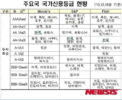 무디스가 한국의 국가신용등급 상향 조치를 취하게 된 근거는 각종 신용위험지표들이다. 국내총생산(GDP) 대비 재정흑자 유지 전망에 GDP 대비 정부 부채비율(40% 수준)과 대외부채비율(30% 수준), 단기외채 비율(30% 수준) 등의 전망치 및 현황을 참고한 결과 국가신용등급 상향을 결정했다는 뜻이다.