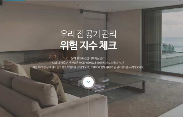 이 웹사이트는 ‘공기에 대한 모든 것’을 콘셉트로 제작됐다. 특히 코웨이 공기청정 기술력과 제품 소개뿐만 아니라 사용자가 사이트 내의 체험형 콘텐츠들을 통해 공기 질 관리의 중요성을 직접 학습하고 자연스럽게 공기청정기가 필요하다는 인식까지 이어질 수 있도록 구성한 점이 특징이다.
