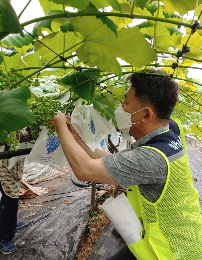 임직원 봉사단은 최근 코로나19로 인한 외국인 노동자의 입국지연 등으로 일손을 구하는데 많은 어려움을 겪는 농가를 직접 찾아가 포도봉지 씌우기, 영농폐자재 수거 등 일손지원 및 농촌환경 개선을 통한 아름다운 마을 가꾸기 활동을 전개했다.