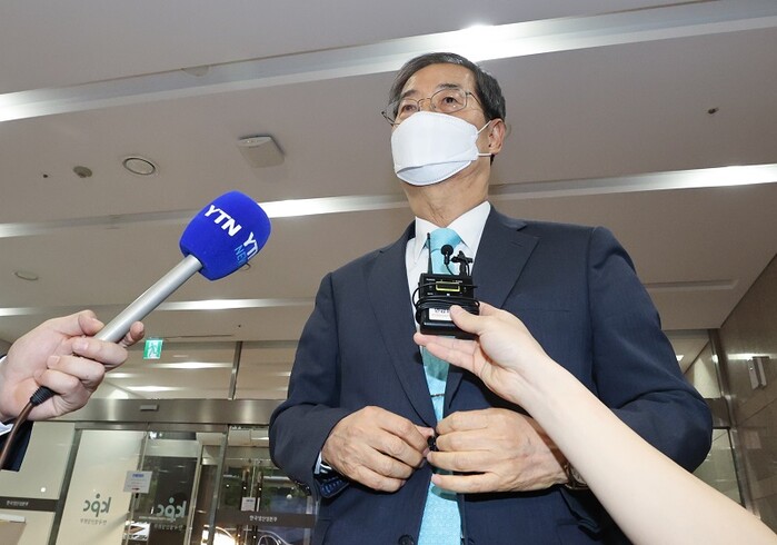 ▲ 한덕수 국무총리 후보자가 임명동의안 표결 직전인 20일 오후 서울 종로구 한국생산성본부 건물에 마련된 국회 인사청문회 준비단 사무실로 들어오며 취재진과 인터뷰하고 있다. [서울=연합뉴스] |