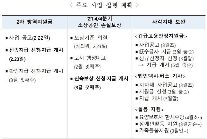 ▲ 주요 사업 집행계획. [기획재정부 제공] |