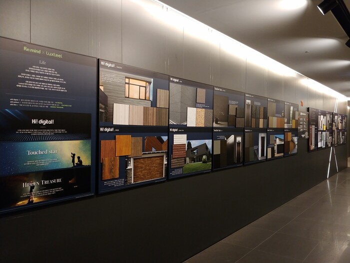 ▲ 동국제강 본사 을지로 페럼타워에 전시된 올해 컬러강판 신제품 샘플 [사진=동국제강 제공] |