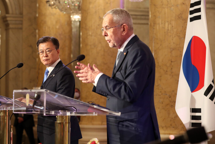 문 대통령은 한반도 평화 정착을 위한 한국 정부의 노력을 설명하면서 군축·비확산 분야 선도국가인 오스트리아의 지속적인 지지를 구했고, 판 데어 벨렌 대통령은 변함없는 지지를 재확인했다.