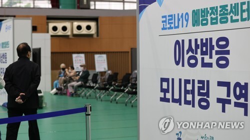 ▲ 지난달 17일 서울 동대문구체육관에 마련된 코로나 백신 접종센터에서 접종한 시민들이 이상반응 모니터링 구역에서 대기하고 있는 모습. [사진=연합뉴스] |