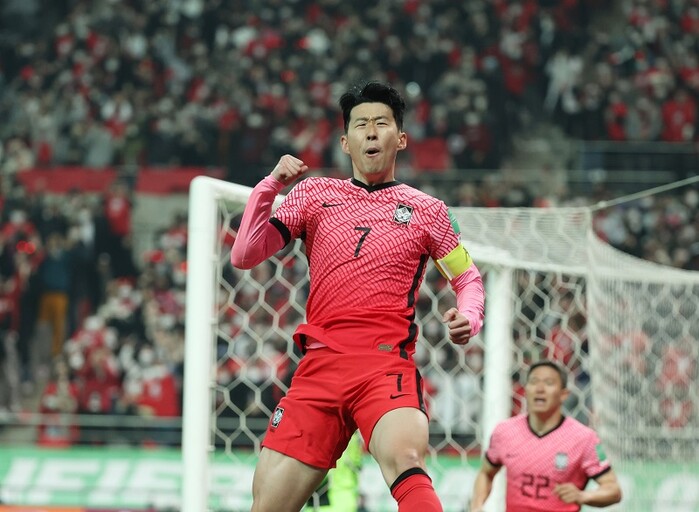 | ▲ 24일 서울 마포구 서울월드컵경기장에서 열린 국제축구연맹(FIFA) 2022 카타르 월드컵 아시아 지역 최종예선 A조 9차전 대한민국과 이란의 경기에서 손흥민이 선취골을 터트린 뒤 환호하고 있다. [서울=연합뉴스] |