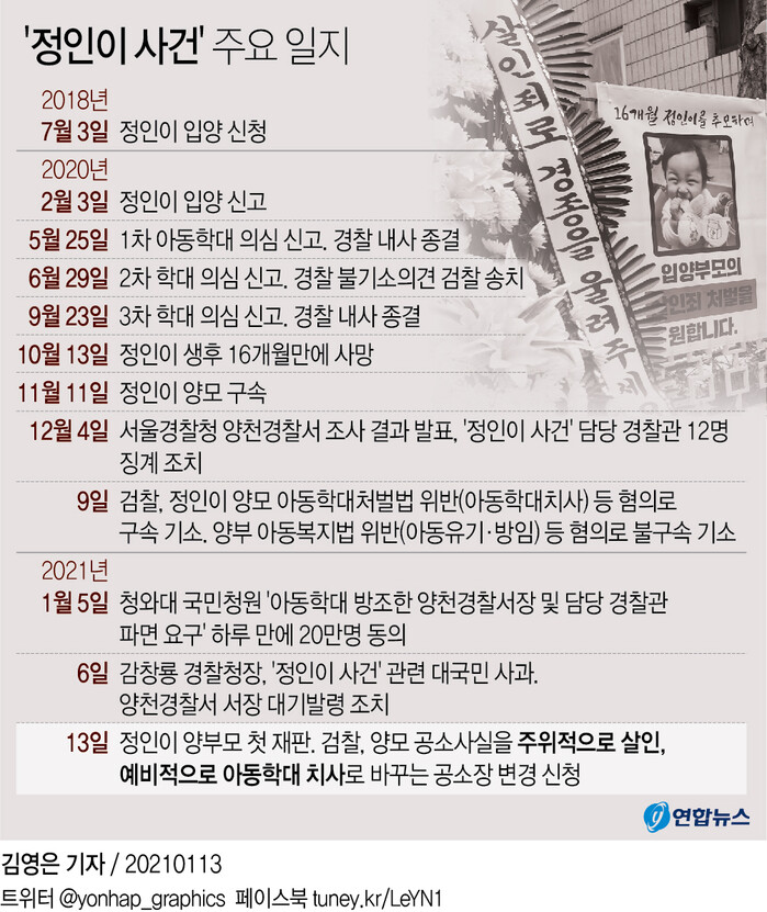 ▲ '정인이 사건' 주요 일지. [그래픽= 연합뉴스] |