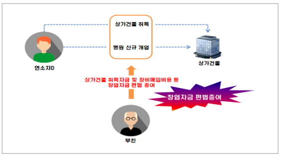 ▲ 부친이 연소자 자녀의 병원 창업자금 편법 증여 사례. [국세청 제공] |