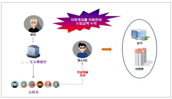 ▲ 차명계좌를 이용해 누락한 사업소득으로 자녀 명의 고액 부동산 취득 사례. [국세청 제공] |