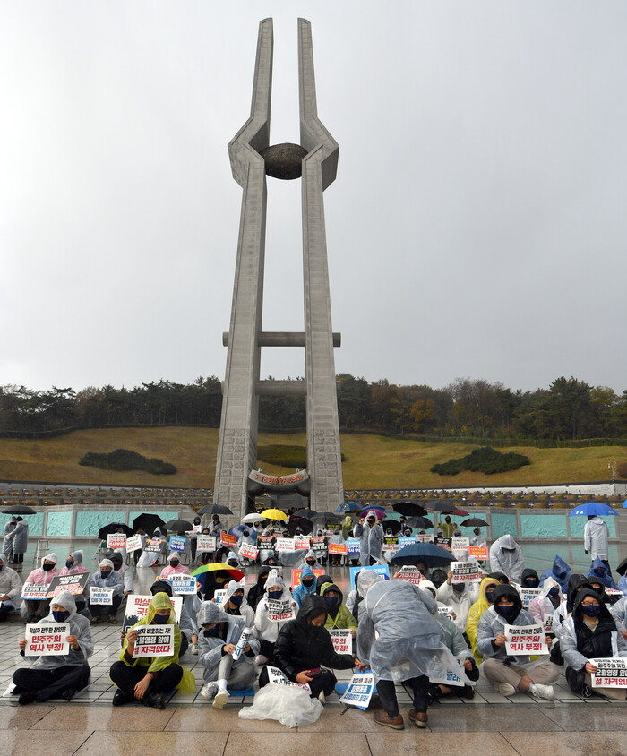 이날 윤 후보는 민주묘지에 30여 분 머무른 뒤 자리를 떴다. 이때 대학생 단체 등으로부터 “윤석열 물러가라”는 항의 구호가 들리기도 했다.