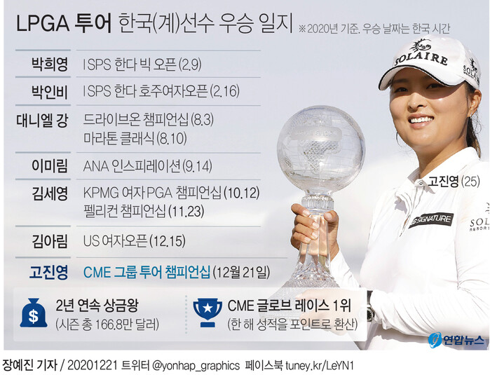 ▲ 2020시즌 LPGA 투어 한국(계)선수 우승 일지. [그래픽= 연합뉴스] |