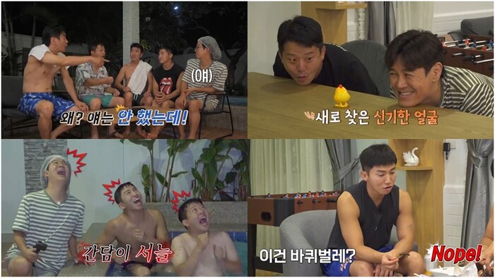 앞서 ‘독박즈’는 숙소비 독박을 쓴 김준호가 직접 예약한 초호화 주택에 입성해, 태국 여행의 마지막 날 밤을 맞았던 터. 하지만 초럭셔리 시설에도 불구하고, 김준호는 “사실 집주인이 아래층에 거주하고 있다”고 밝혀, 멤버들을 분노케 했다. 그럼에도 멤버들은 ‘기생충 하우스’의 컨디션에 이내 만족해하고, 얼마 후 주인의 허락(?) 하에 럭셔리한 전용풀에서 야간 수영을 즐긴다.