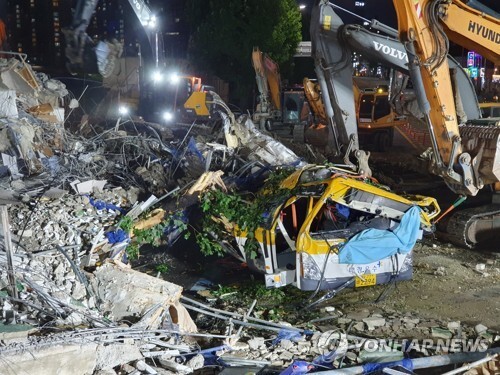 경찰과 소방당국은 애초 버스 한 대와 승용차 두 대가 매몰됐다는 목격자 진술을 확보했지만 구청 폐쇄회로(CC)TV를 확인한 결과 다행히도 승용차들은 붕괴 직전 멈춰 선 것으로 확인했다.