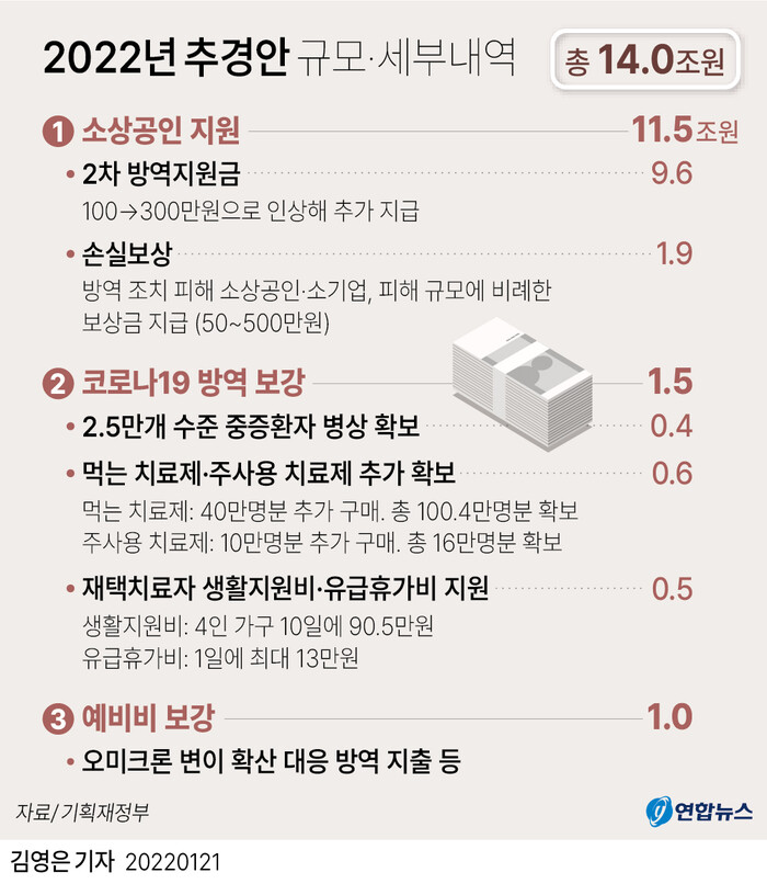▲ 2022년 첫 추경안 규모 및 세부내역. [그래픽=연합뉴스] |