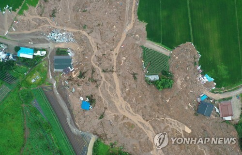 ▲ 8일 오후 전남 곡성군 오산면 한 마을에 산사태로 마을에 토사가 뒤덮혀있다. 전날 발생한 산사태는 주택을 덮쳐 5명이 매몰돼 모두 숨졌다. [곡성= 연합뉴스] |