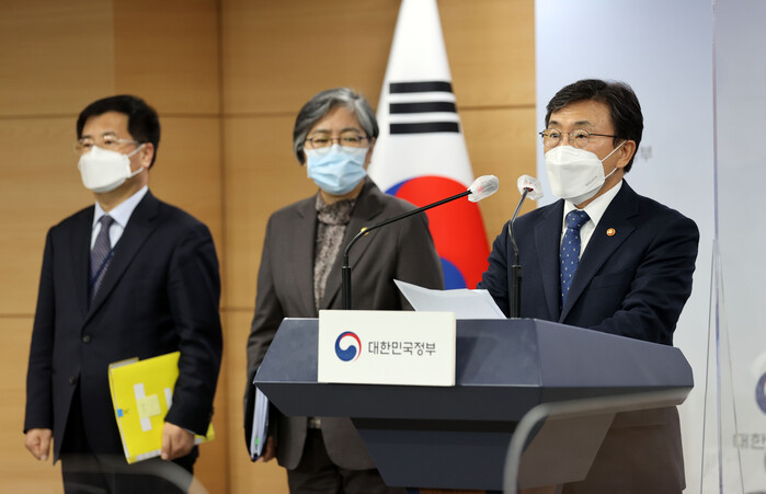 ▲ 24일 서울 종로구 정부서울청사에서 열린 코로나19 백신 도입 관련 부처 합동 긴급 브리핑에서 권덕철 백신도입 TF 팀장(보건복지부 장관)이 화이자 백신 추가 계약 사실을 발표하고 있다. [사진= 연합뉴스] |