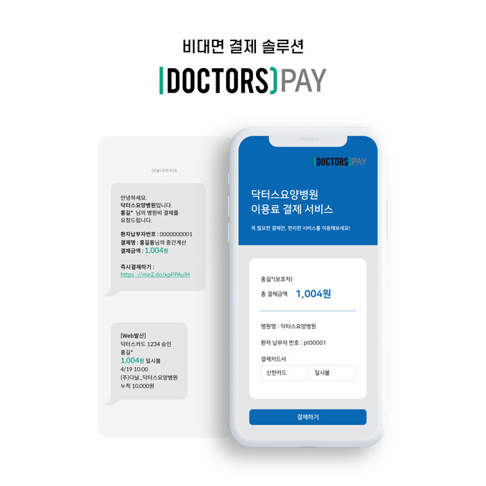 '닥터스'를 사용하는 병원에서 결제 문자를 환자에게 전송하면 환자가 문자 내 결제액을 확인하고 URL을 통해 납부할 수 있다. 시·공간 제약 없이 비용 결제가 가능하다.