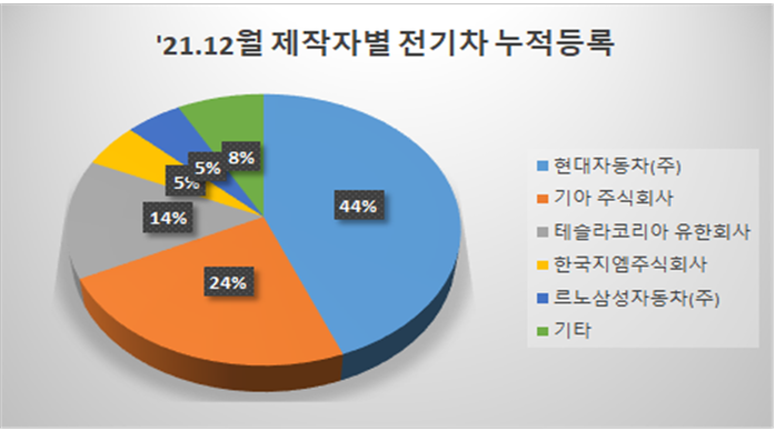 ▲ 2021년 12월 기준 제작사별 전기차 누적등록 대수 비율. [국토교통부 제공] |