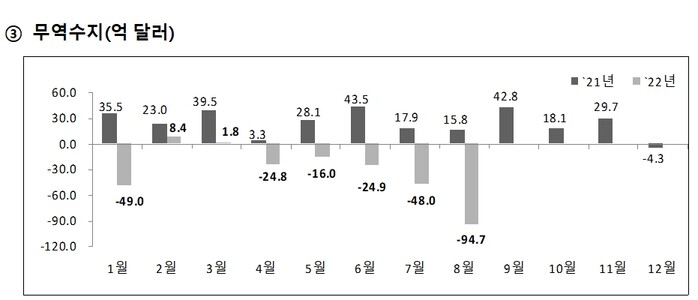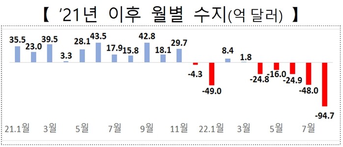 ▲ 21년 이후 월별 수지. [산업부 제공] |