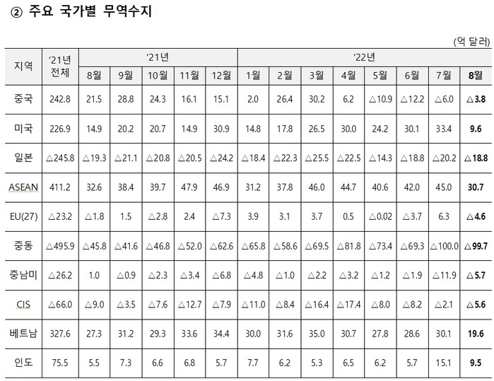 ▲ 주요국가별 무역수지. [산업부 제공] |