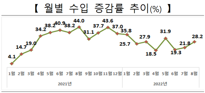▲ 월별 수입 증감률 추이. [산업부 제공] |