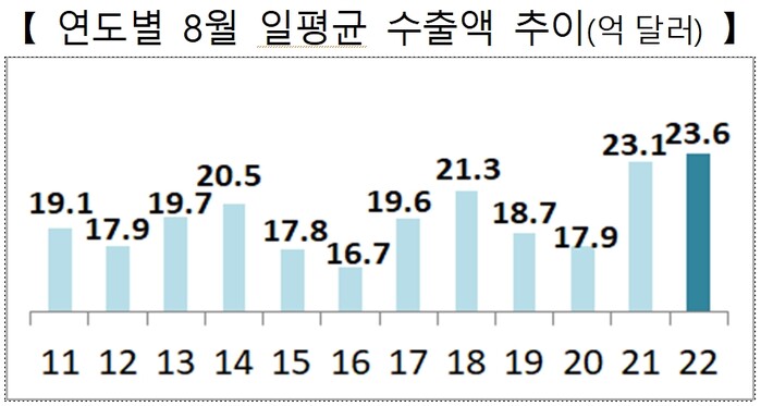 ▲ 연도별 8월 일평균 수출액 추이. [산업부 제공] |