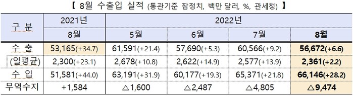 수출 증가에도 불구하고 대규모 에너지 수입 등 여파로 8월 수입액은 역대 최대였다.