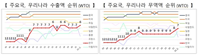 무역·수출 증가세에 기반해 역대 처음으로 무역순위 7위 달성