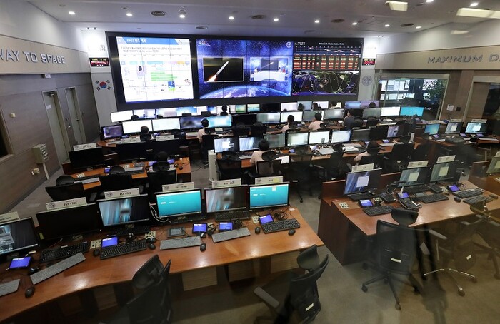 ▲ 23일 오전 대전시 유성구 어은동 한국항공우주연구원 위성종합관제실에서 연구진이 항공위성 1호기 발사 장면을 확인하고 있다. [대전=연합뉴스] |
