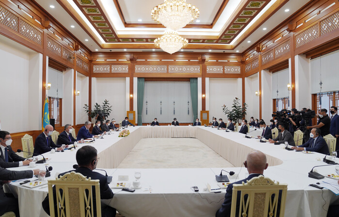 한국 측에서는 문 대통령과 문승욱 산업통상자원부 장관, 이호승 청와대 정책실장, 그리고 카자흐스탄 측에서 희망한 10개 기업 기업인 등 13명이 참석했고, 카자흐스탄 측에서는 토카예프 대통령, 정부 관료, 바크트 듀센바예프 주한카자흐스탄 대사, 기업 대표 등 11명이 자리했다.