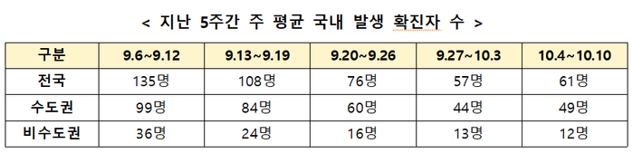 ▲ 지난 5주간 주 평균 국내 발생 확진자수. [출처= 중앙재난안전대책본부] |