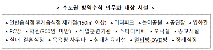 ▲ 수도권 방역수칙 의무화 대상 시설. [출처= 중앙재난안전대책본부] |
