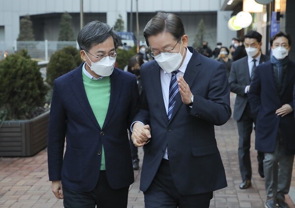 이재명 후보와 김동연 후보는 이날 오후 5시 30분 서울 마포의 한 카페에서 전격적으로 회동하고 ‘정치교체를 위한 공동선언’에 합의했다.
