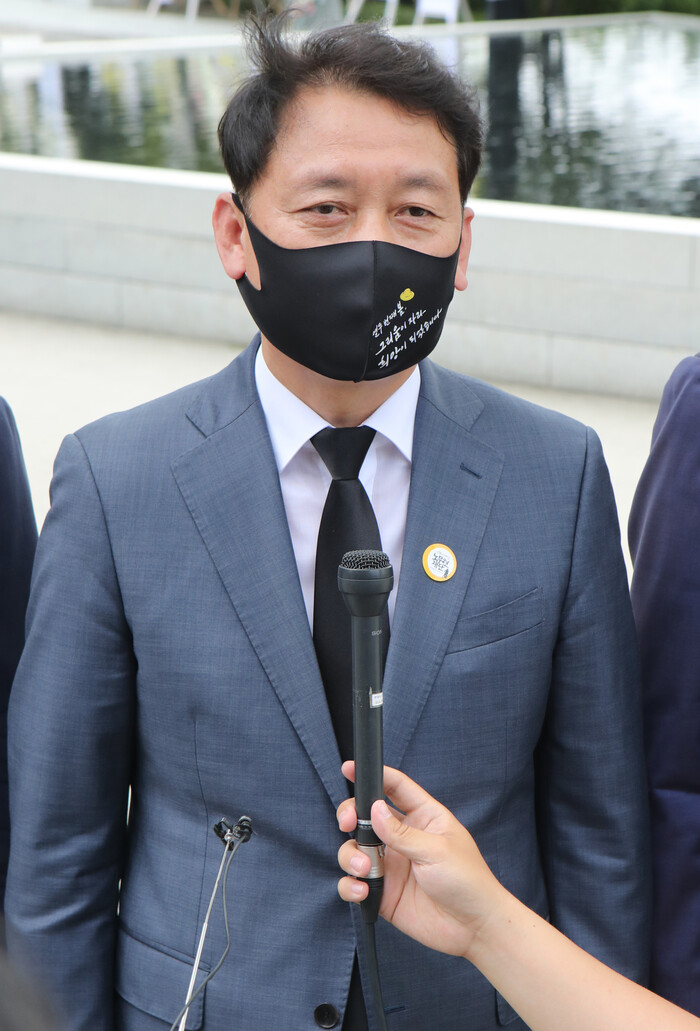 ▲ 이광재 의원이 23일 오전 경남 김해시 진영읍 봉하마을에서 열린 '노무현 전 대통령 서거 12주기 공식 추도식' 후 행사장 앞에서 대선후보 출마 기자회견을 하고 있다. [김해=연합뉴스]