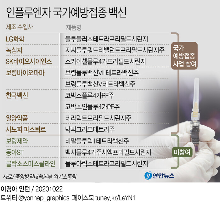 이들이 맞은 독감백신은 각각 녹십자 제품과 SK바이오사이언스의 스카이셀플루4가 등인 것으로 파악됐다.