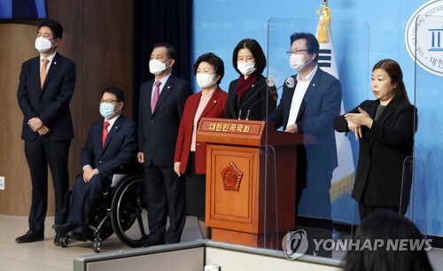 ▲ 국회 보건복지위원회 소속 국민의힘 강기윤 간사 등 의원들이 22일 서울 여의도 국회 소통관에서 독감 백신 접종 후 사망 사건과 관련해 성명을 발표하고 있다. 이들은 "국민 불안이 갈수록 커지고 있다"며 "정부는 독감 백신을 전수조사하고 접종 중단까지 검토해야 한다"고 요구했다. [사진= 연합뉴스] |
