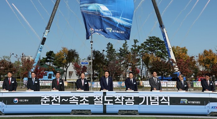 착공식에는 동서고속화철도 조기 완공을 공약한 윤석열 대통령을 비롯해 원희룡 국토교통부 장관, 김진태 강원도지사, 지역주민 등 400여명이 참석했다.
