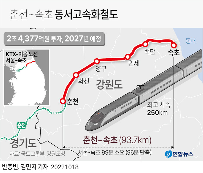 | ▲ 춘천~속초 동서고속화철도 개요. [그래픽=연합뉴스] |