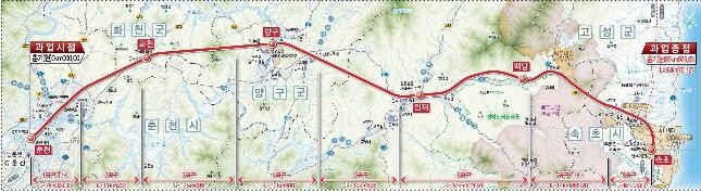 | ▲ 춘천∼속초 동서고속화철도 노선도. [국토교통부 제공] |