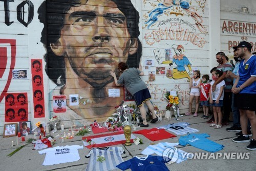 ▲ 마라도나 벽화 앞에 모인 팬들. [로이터=연합뉴스] |