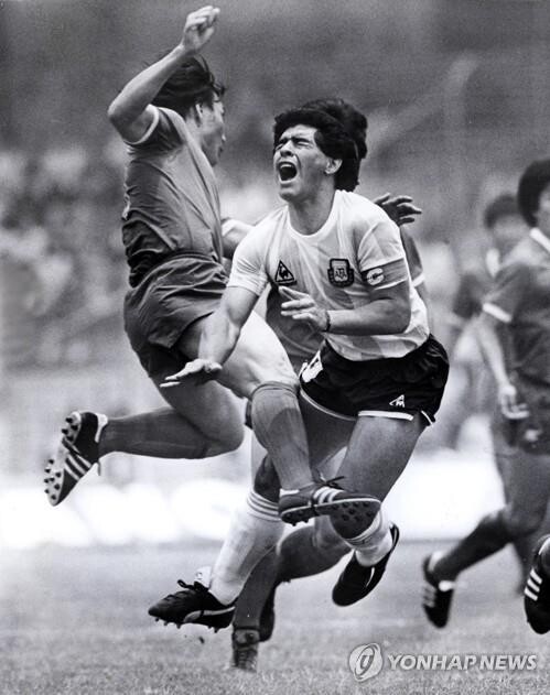▲ 1986년 멕시코 월드컵 맞대결 때 마라도나 수비하는 허정무 이사장 [사진= 연합뉴스] |