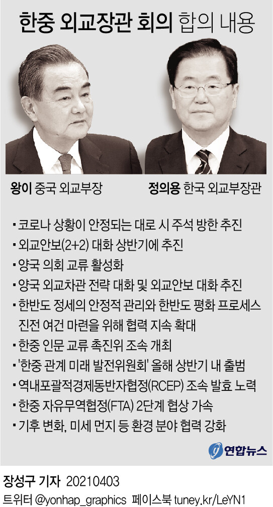 | ▲ 한중 외교장관 회의 합의 내용. [그래픽= 연합뉴스] |