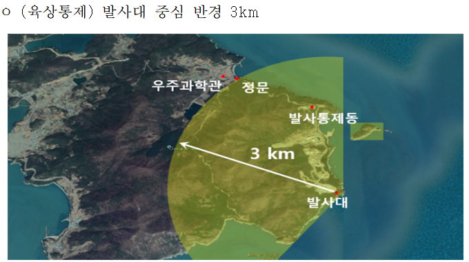 ▲ 발사대 중심 반경 3km에는 육상 통제구역이 설정된다. [과학기술정보통신부 제공] |