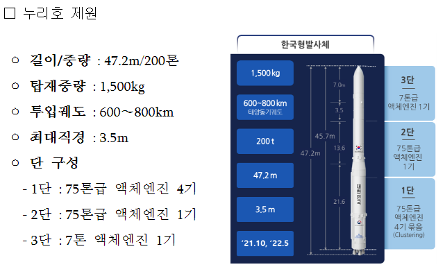▲ 누리호 제원. [과학기술정통부 제공] |