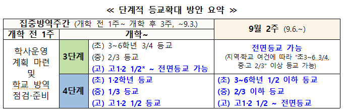 ▲ 단계적 등교확대 방안 요약. [출처=교육부] |