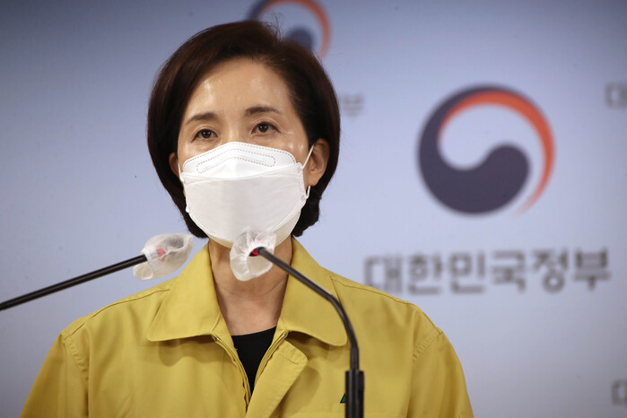▲ 유은혜 사회부총리 겸 교육부 장관이 9일 정부서울청사 브리핑실에서 전면등교 여부 등 2학기 학사 운영 방안을 발표하고 있다. [사진=연합뉴스] |