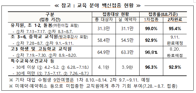 ▲ 교육 분야 백신접종 현황. [출처=교육부] |