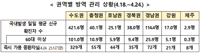 ▲ 권역별 방역 관리 상황. [출처= 중앙재난안전대책본부] |