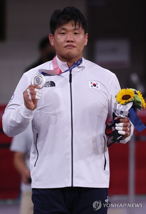 | ▲ 29일 일본 도쿄 무도관에서 도쿄올림픽 유도 남자 -100kg급에서 은메달을 차지한 조구함이 은메달을 들어보이고 있다. [도쿄=연합뉴스] |