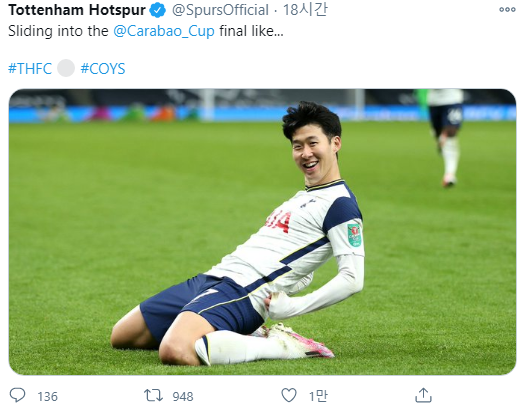 ▲ 토트넘 구단은 공식 SNS를 통해 손흥민이 유럽 개인 통산 150호골을 터뜨린 뒤 잔디를 미끌어지는 세리머니 모습을 업로드하며 리그컵 결승에서도 그같은 장면이 연출되기를 기원했다. [출처= 토트넘 홋스퍼 공식 트위터 캡처] |