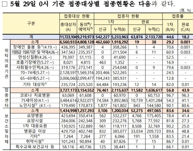 ▲ 접종대상별 접종현황. [출처=코로나19 예방접종 대응 추진단] |
